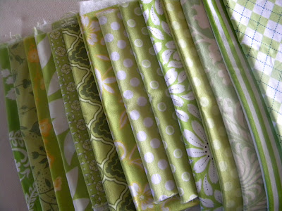 There are so many different shades of green. I'm hoping I'll be able to put them all together in the same quilt. I'm still not sure what solid color to put with them. Light blue? Tan? Gray? Till then, I'm sure another green will catch my attention!