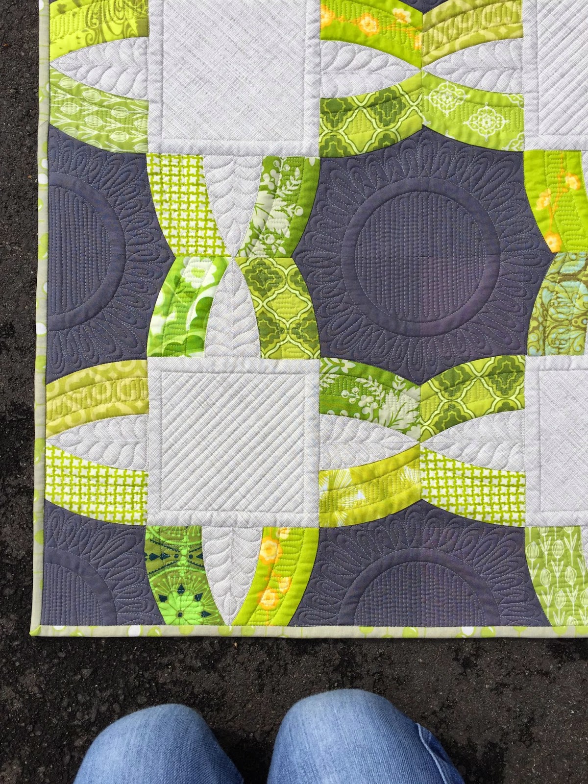 I've collected some of my favorite greens from some of my favorite fabric designers over the years and got to use them all at one time for this little quilt!