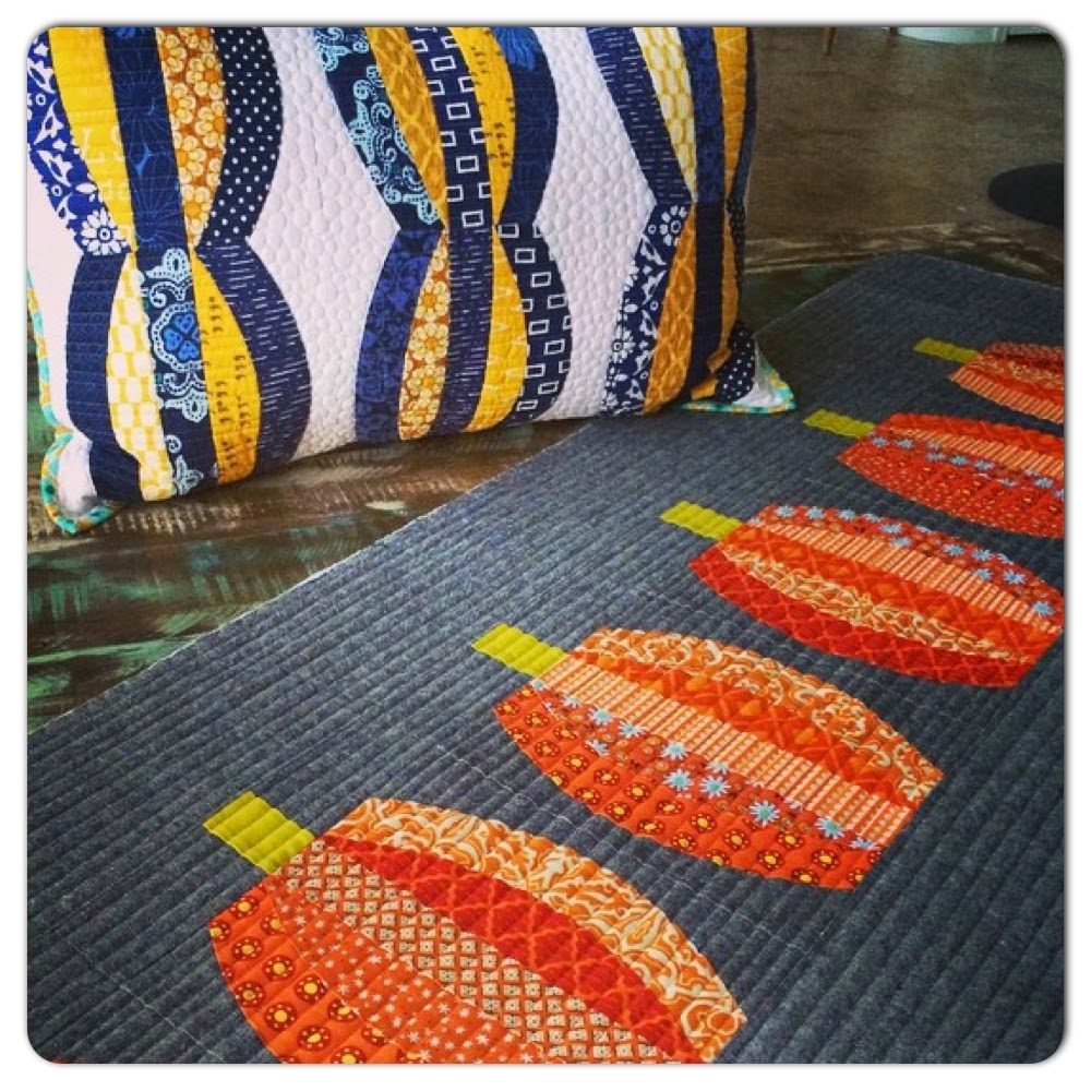 Check out those darling pumpkins! Helen put a spin on our Crazy Eights pattern in the our Contemporary Curved Quilts book and made a harvest table runner! Love it! :)