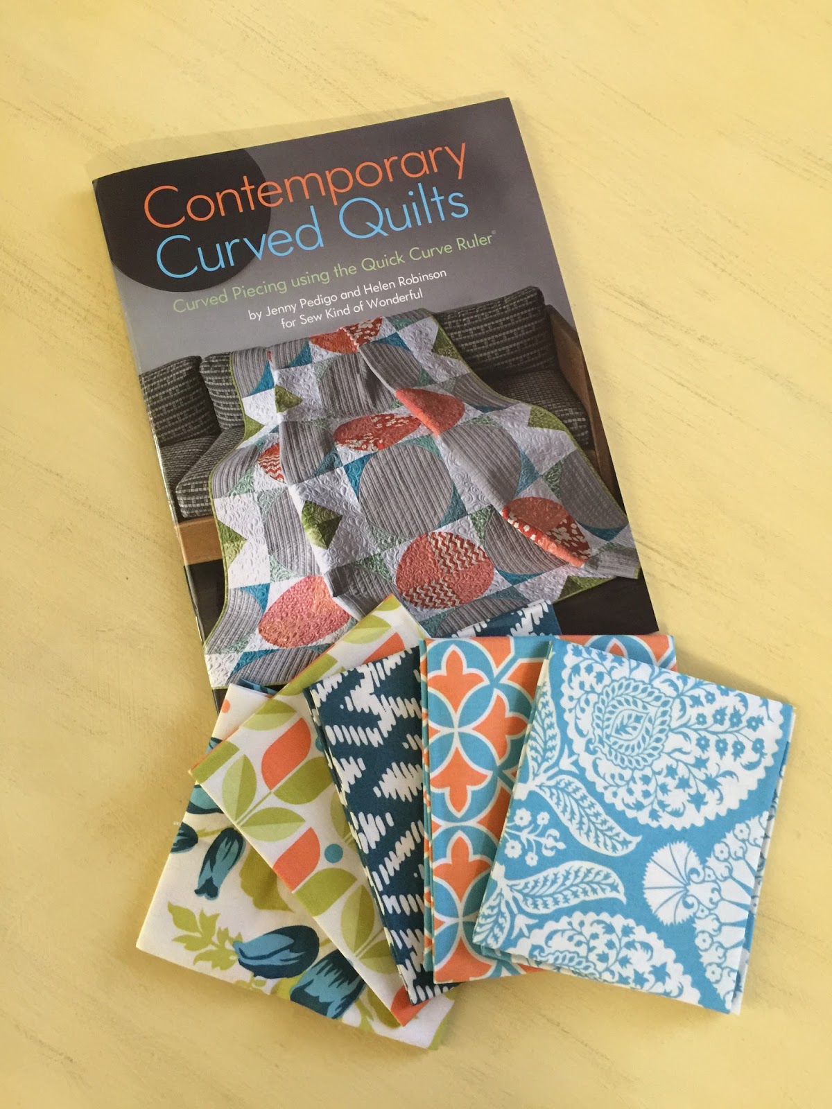 We have a great giveaway of our Contemporary Curved Quilts book with 5 Joel Dewberry fat quarters! The book has 8 fun projects from pillow to quilt size, and the fabrics are that fun fresh floral that Joel Dewberry is known for!