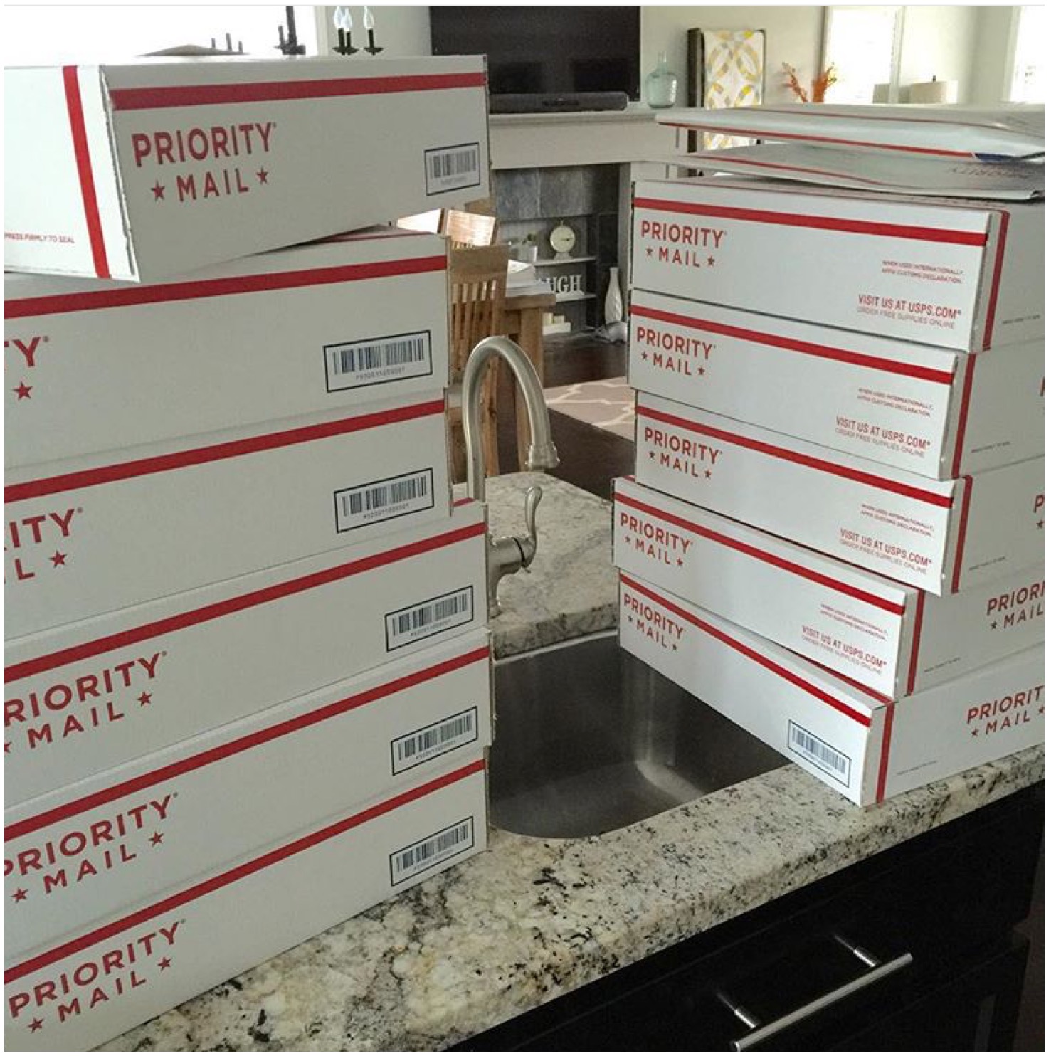 We're so grateful for Leanna, Helen's daughter, and her husband Brandon. We're lucky they live in Houston and allowed us to send product to their cute and very neat apartment! Our boxes occupied a full corner of their home! We appreciated grandma's (mom - Sherril Passey) and Leanna's help setting up and working in our booth.
