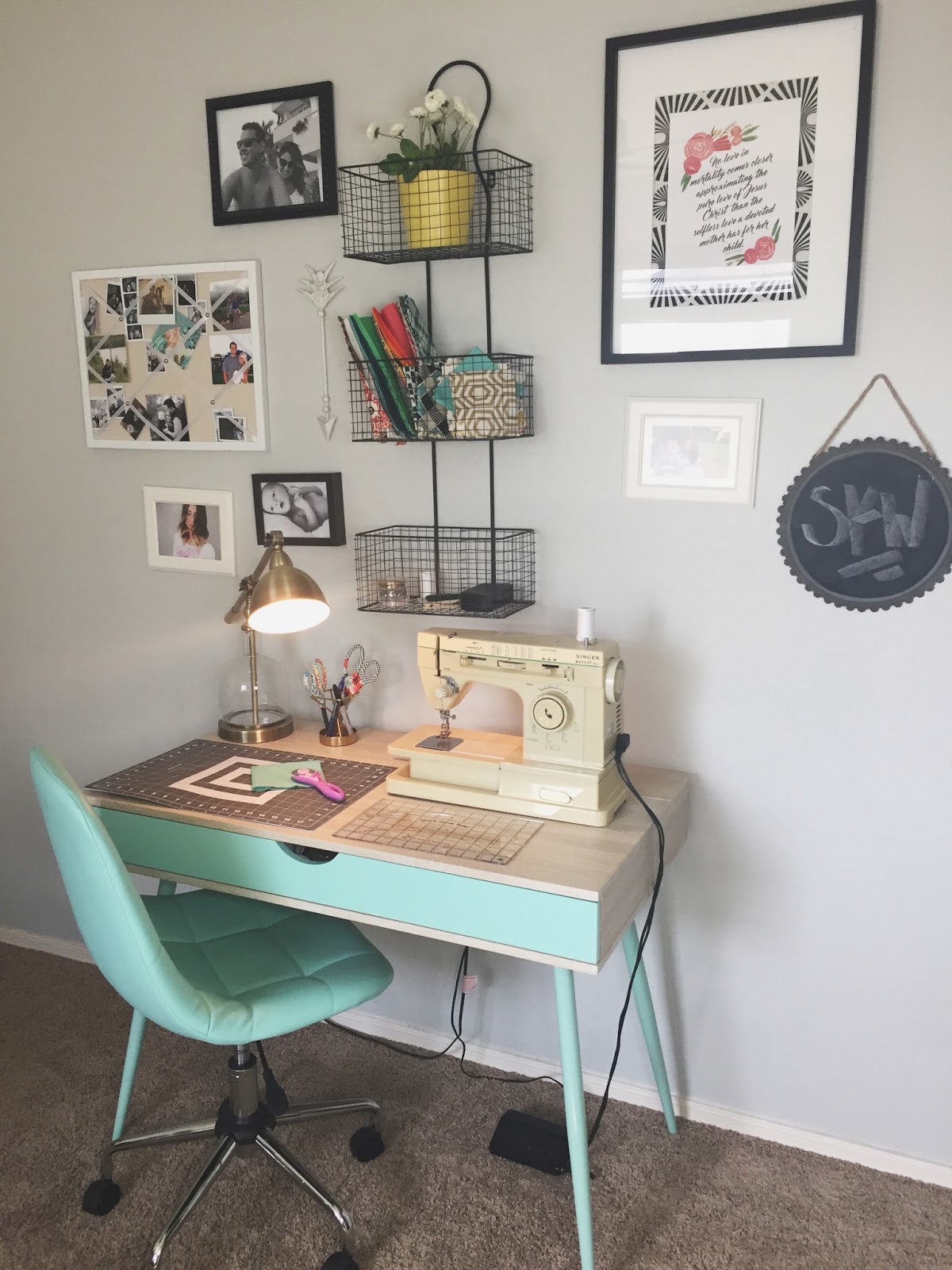 Here is Sew Kind of Wonderful's Director of Business Operations, Kimbra Lovgren's, quilting zone! Her mom gave her an old sewing machine she had lying around! Kimbra began quilting in January. |