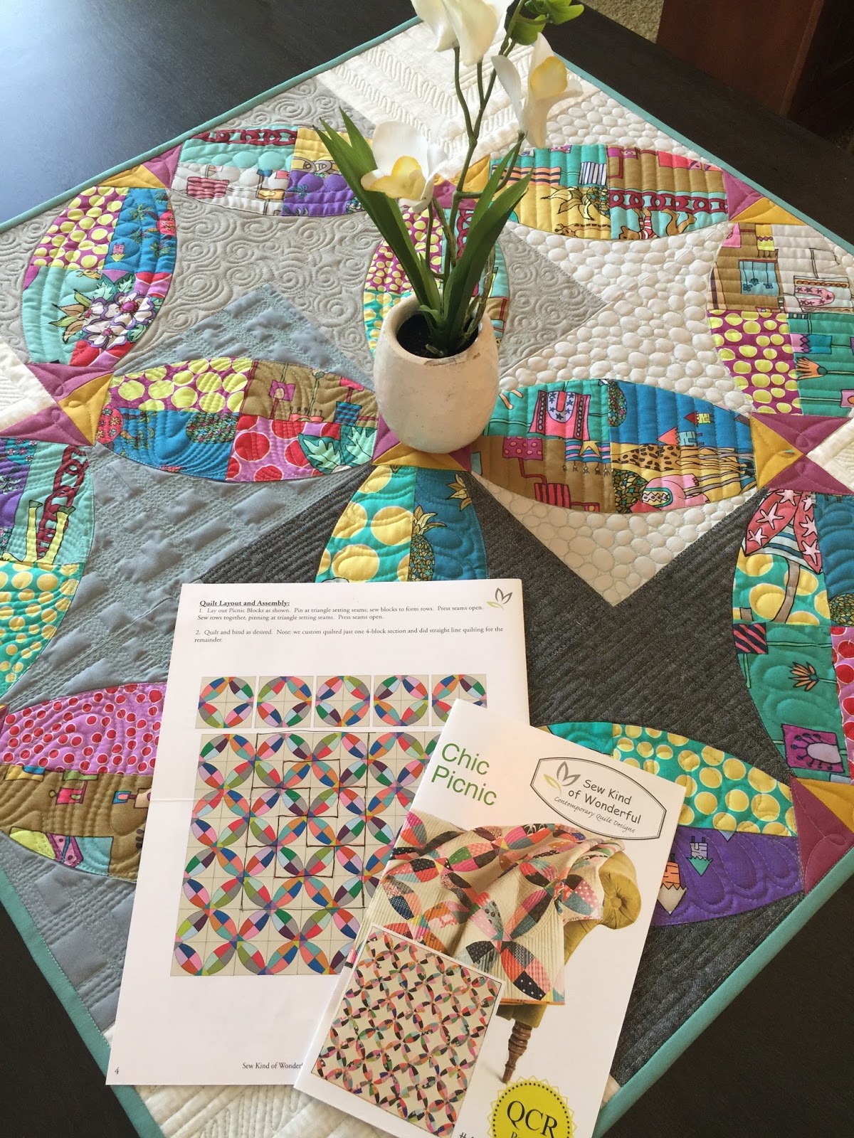 After a few more tweaks here is the fun Picnic Celebration mini quilt......The quilting helped the