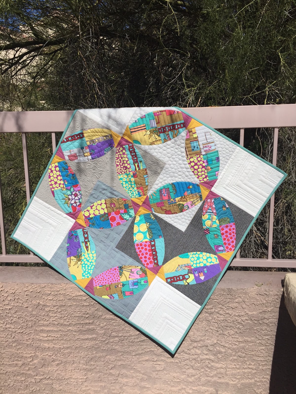 Some of the elements we always try to incorporate in our designs include: high contrast between fabric texture and color, use of solids to show off the curved piecing, and to take a less than traditional approach to the overall design....