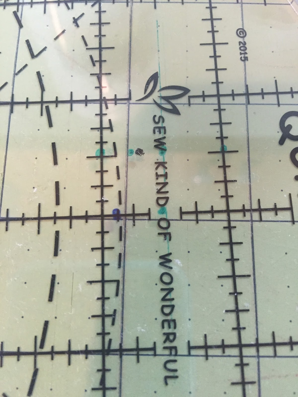 Place a small dot on your rulers at the square up mark's indicated in each of our patterns.